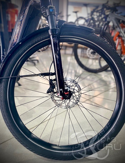 Es una bicicleta eléctrica robusta capaz de soportar las exigencias de los desplazamientos urbanos y los paseos del fin de semana. La horquilla de suspensión y la tija de sillín añaden una nota de confort allí donde más importa.